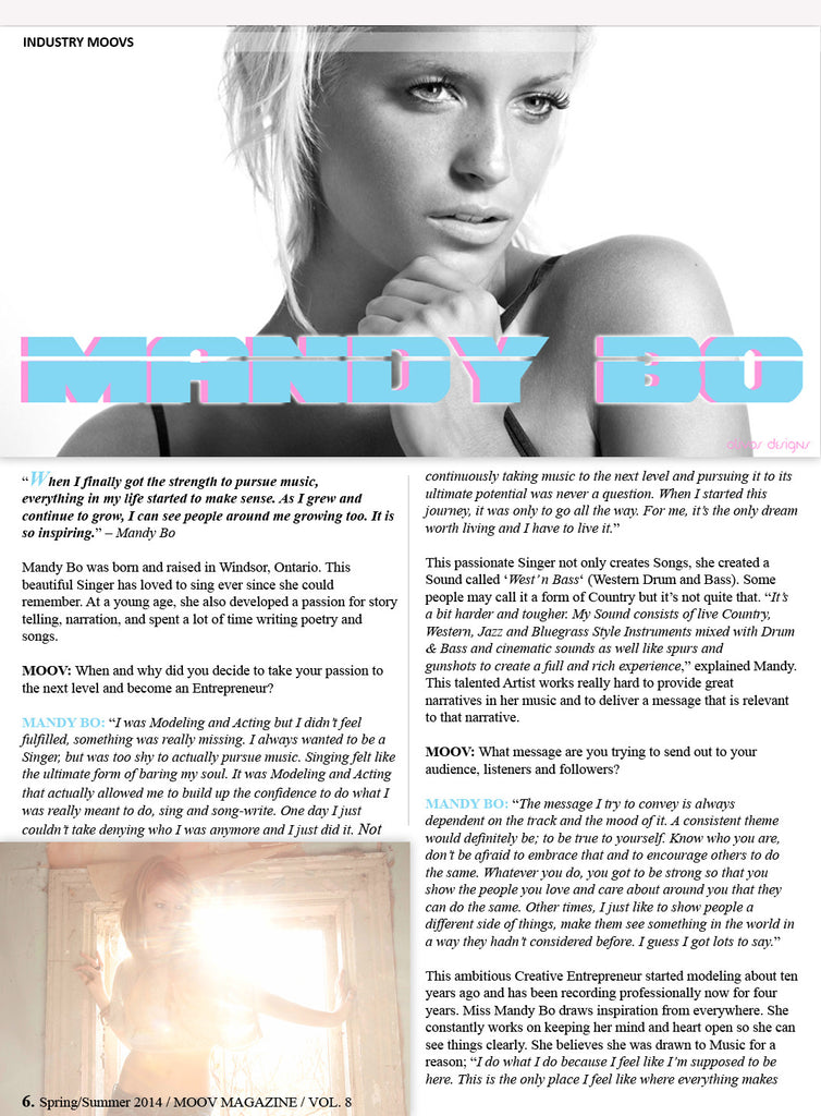 Thank you so much to MOOV Magazine for the two page spread in their latest Spring/Summer 2014 issue.